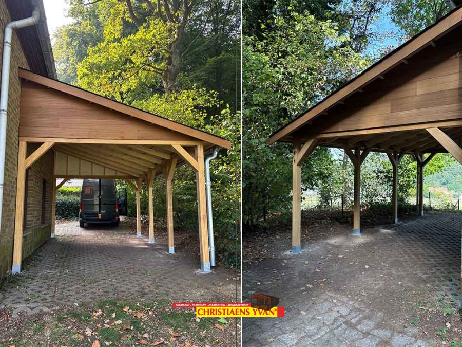Parkeren in stijl, het kan! Onze carports beschermen uw wagen tegen het meest gure weer, zodat u langer van uw auto kunt genieten. Wenst u een aangebouwd en afgesloten plekje om ook andere spullen of fietsen op te bergen? Geen probleem, de mogelijkheden zijn eindeloos. Of u nu gaat voor een modern plat dak of een landelijk ogend schuin dak met leien: de warme look van de houtsoorten in ons gamma sluit perfect aan bij de stijl van elke woning. Zo zorgen we voor een prachtig, praktisch geheel.